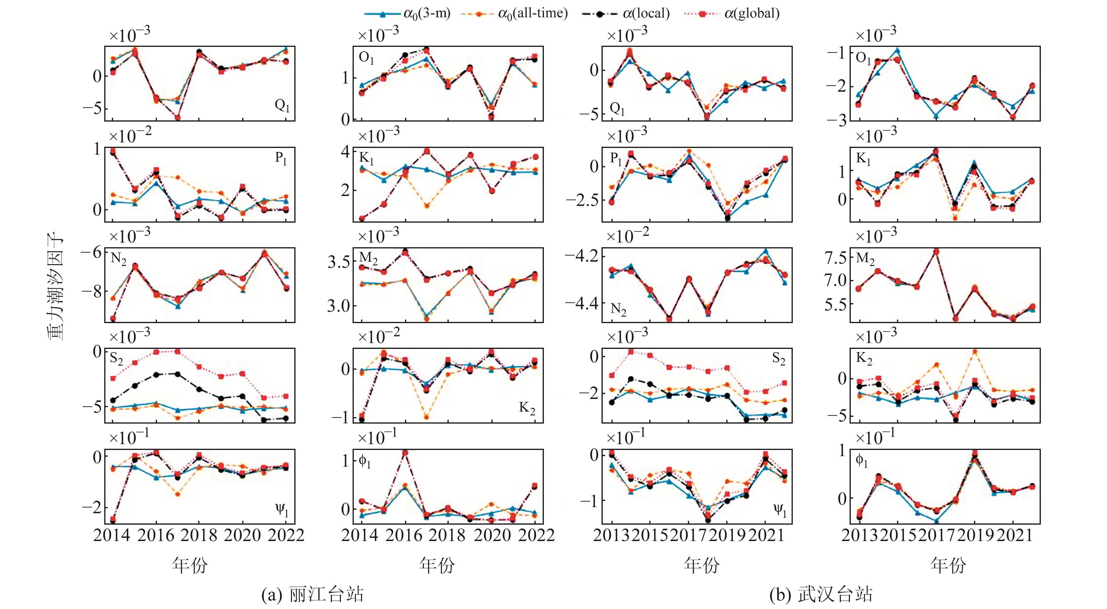 丽江和武汉台站潮汐参数