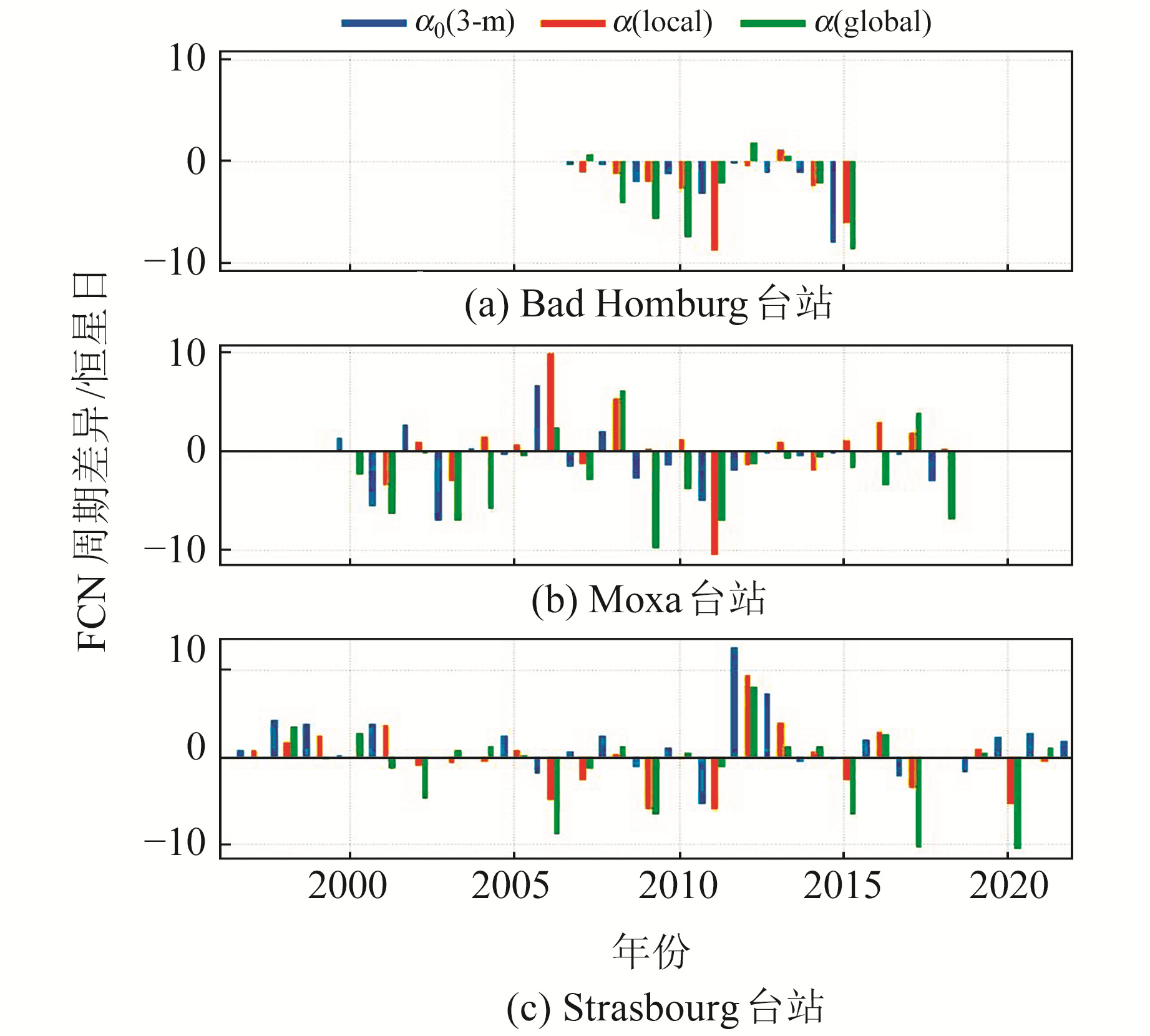 不同气压修正方法计算的FCN周期差异