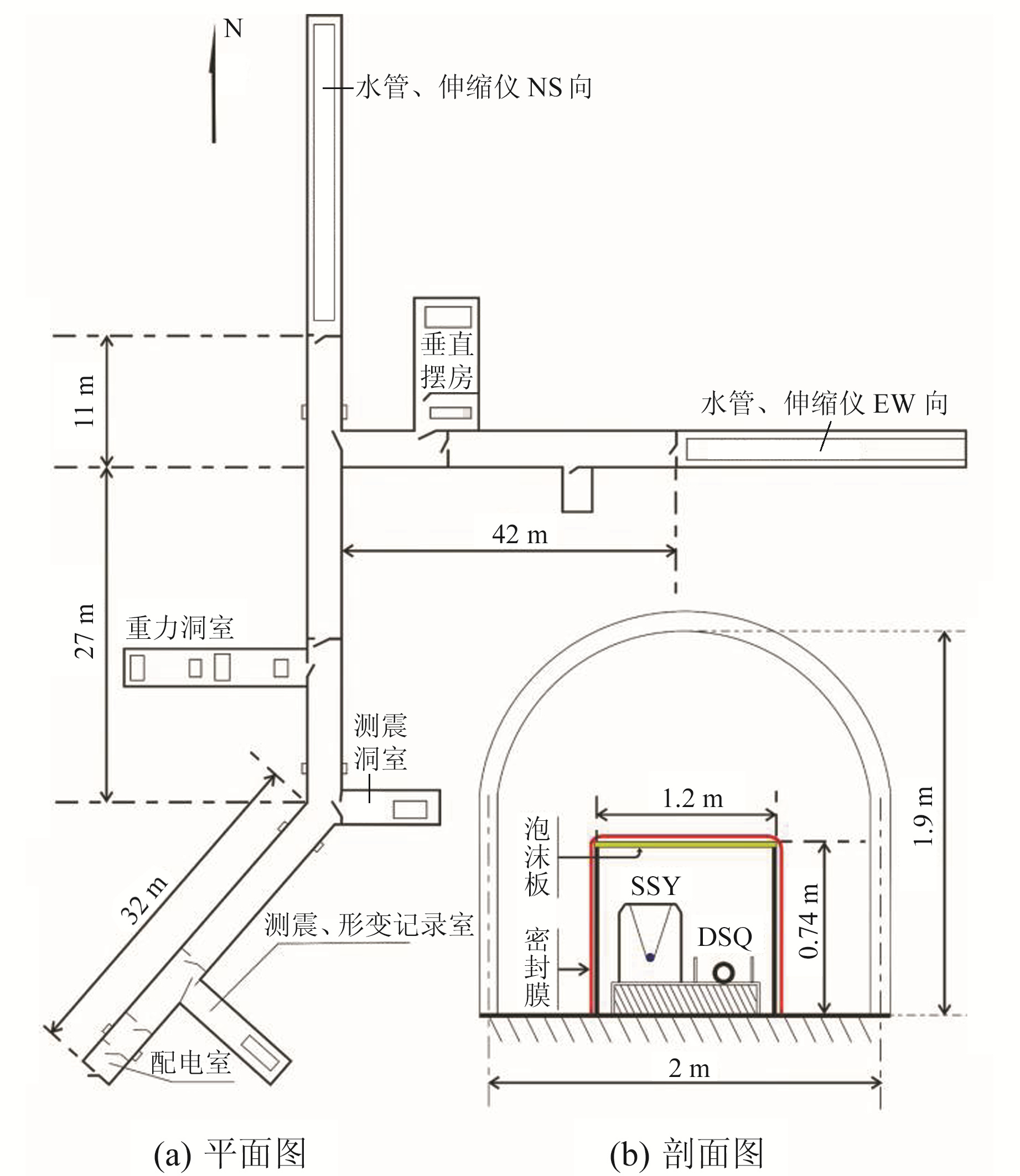 乌加河台山洞仪器布设方位图与伸缩仪剖面