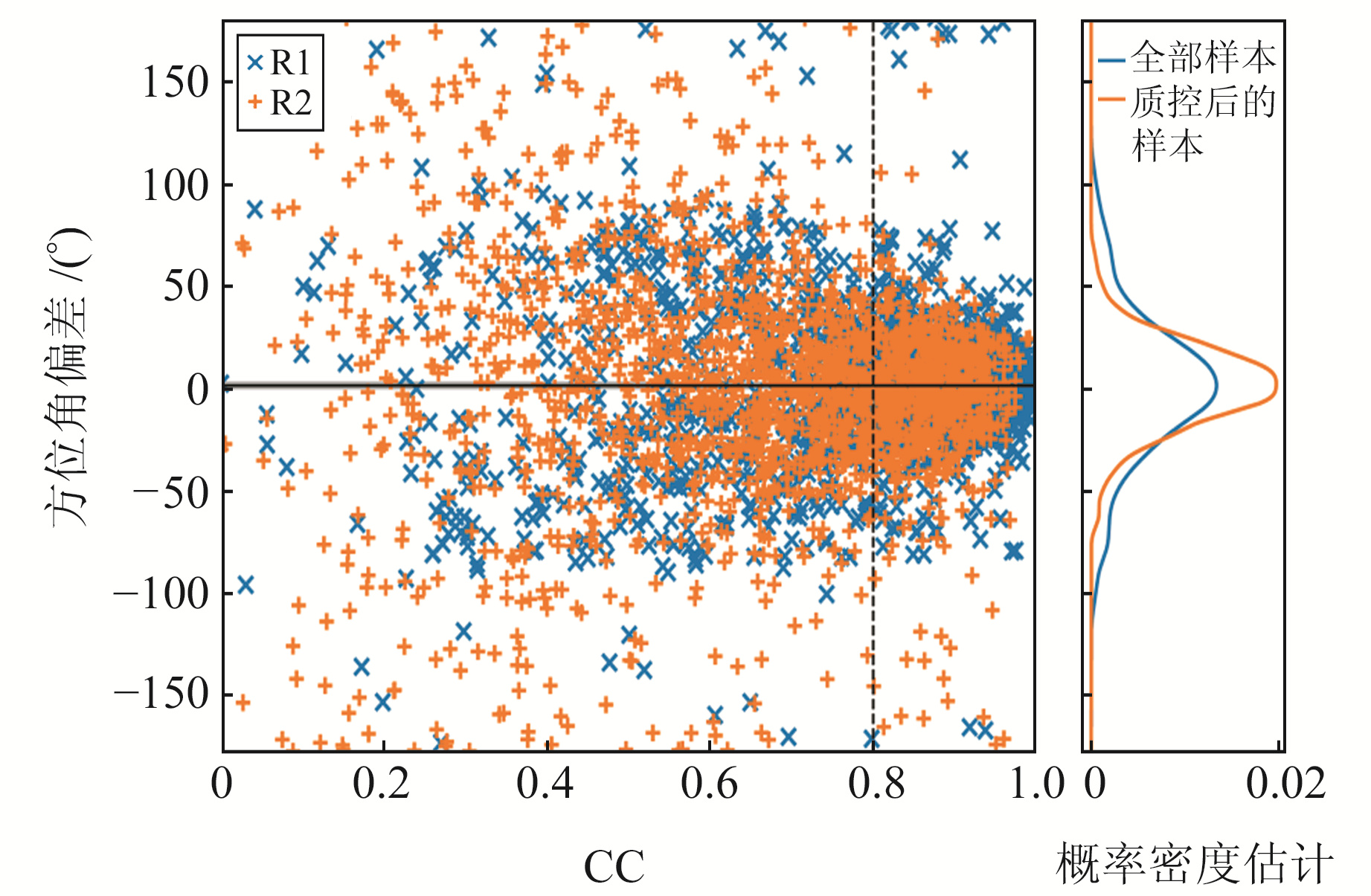 分量旋转及方位角偏差示意图